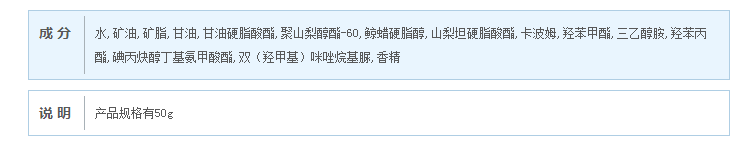 某品牌生产的护体膏在国产非特殊用途化妆品备案服务平台上的成分说明。