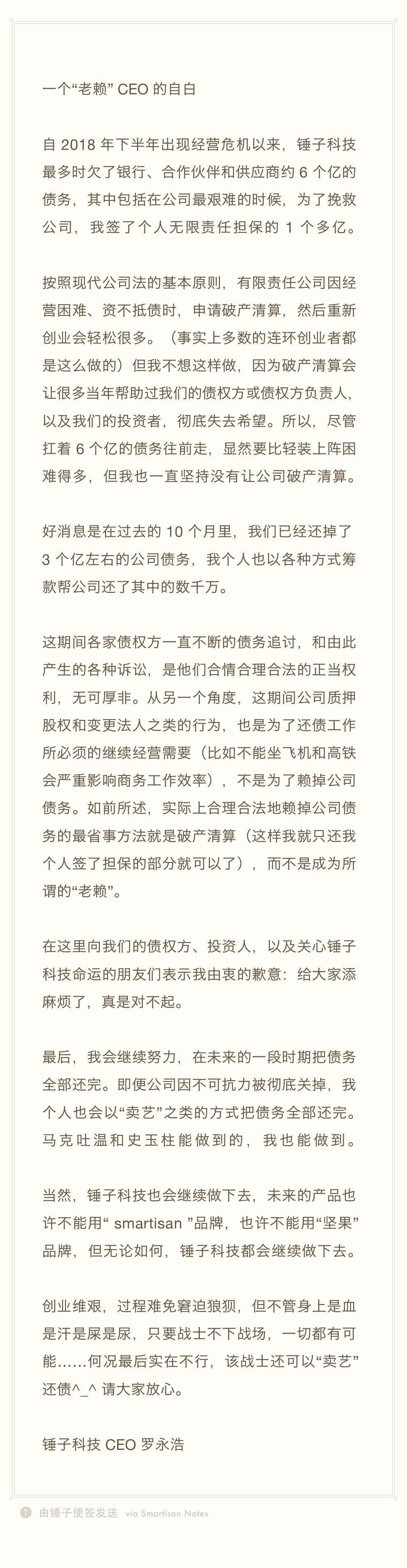 或许,这一次,罗永浩如他在《一个“老赖”CEO的自由》一文中说的那般,走上了“卖艺”还债之路。