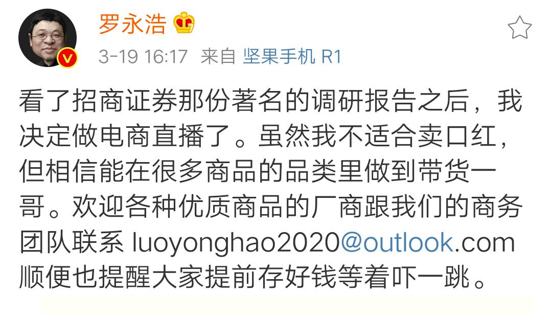 因为他官宣:“我决定做电商直播了。”