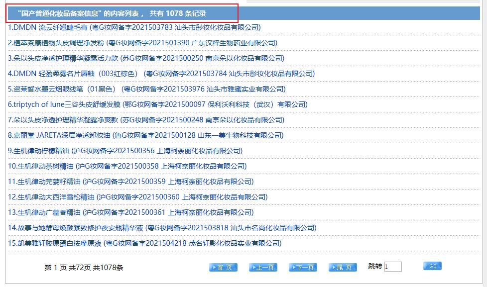 6月7日,普通化妆品备案新增至72条。6月10日,普通化妆品备案新增至375条。6月18日,普通化妆品备案新增至683条。截止目前(2021年6月25日),普通化妆品备案数量增加至1078条。