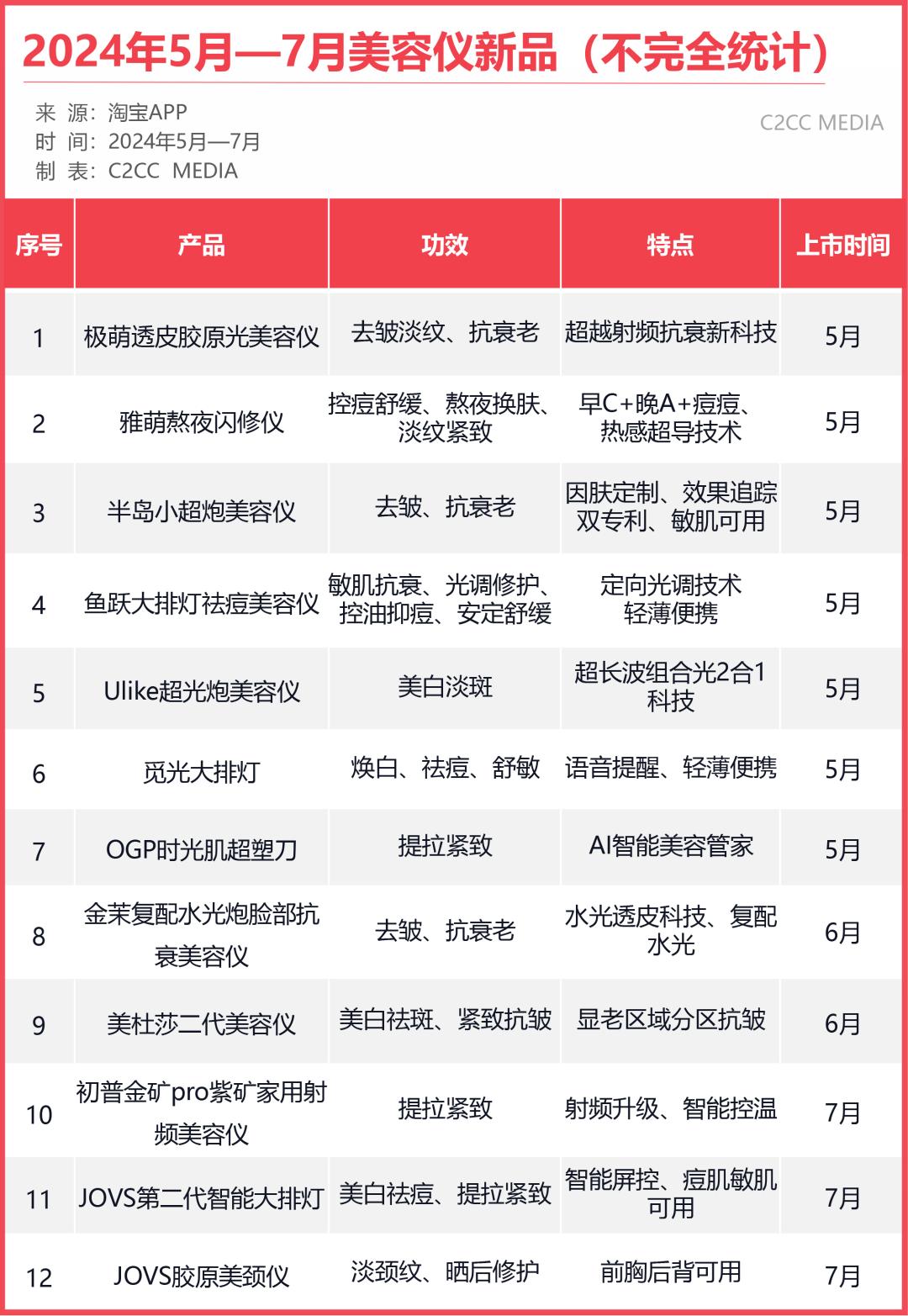 从表格中可以看出,目前美容仪市场存在以下趋势: