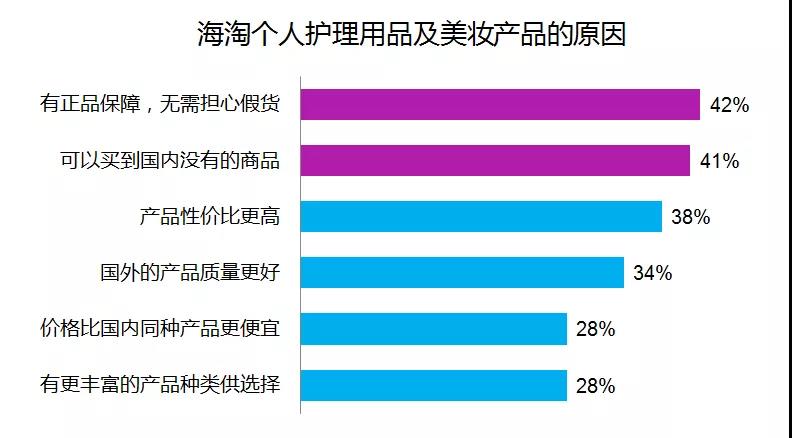 相比数次网购活动带来的消费狂欢,海淘仍处于起步阶段,仅3.4%的被访者在过去12个月海淘过个人护理用品及美妆产品,60%的海淘族选择以海外直邮的方式在国内网站购买。“正品保障”(42%)和“可以买到国内没有的商品”(41%)是海淘的主要原因。同时,海淘吸引消费者的还有“高性价比”(38%)及“质量好”(34%)。可见,无论选择何种购买方式,消费者的需求天平正逐渐从“价廉”向“物美”倾斜。