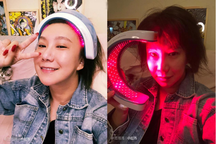 在小红书上搜素时,可以看到不少明星、博主都在推荐生发仪。如范湉湉6个月测评HairMax生发仪。范湉湉表示,她在奇葩说第四季开始掉头发,经过网上查询及网友推荐,入手了两款生发仪,并通过自己6个月的实测后,在小红书上写了相关测评。