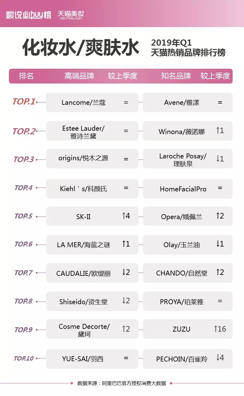 Q1化妆水/爽肤水天猫热销品牌TOP10