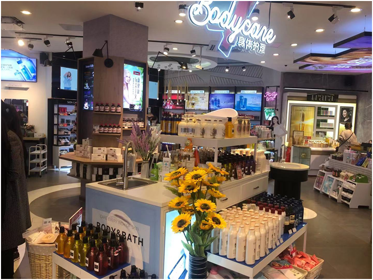 中区主要设有青春护肤区、青春问题护肤区、面部清洁、时尚护肤工具、身体工具、家居、口腔、身体防晒等产品供顾客自主选购,各个区域的场景陈列也是极为重要。