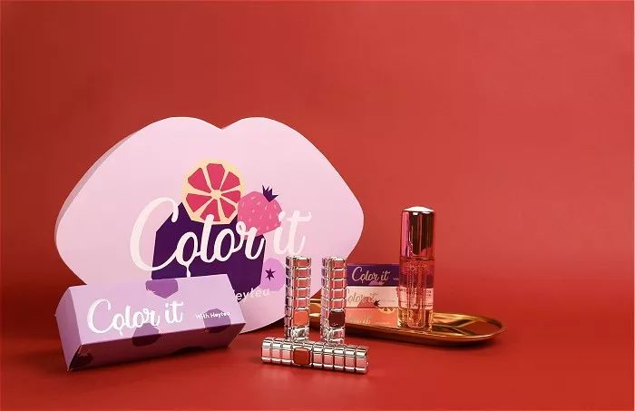 其礼盒中明艳的朱砂色唇釉甚是貌美,