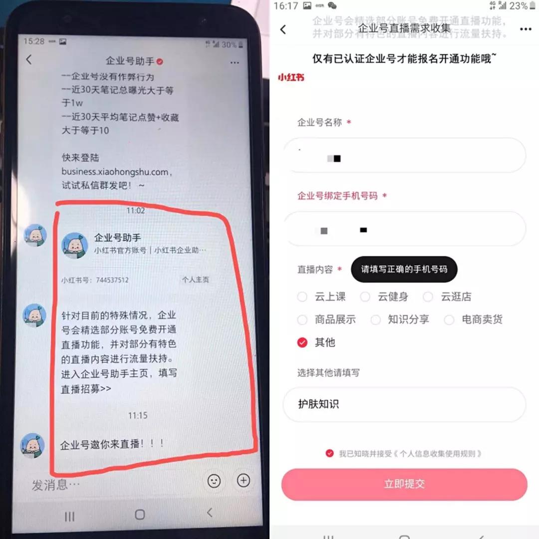 但小红书企业号直播招募报名,