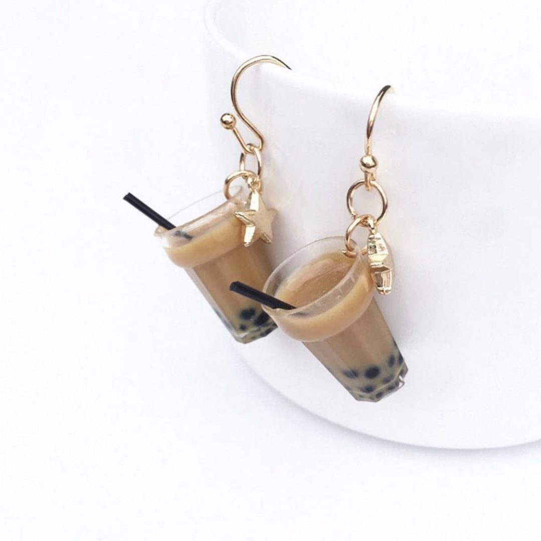 逼真的珍珠奶茶耳环, 随步伐摇曳甜味从耳畔延伸到脚尖 步步生香甜。