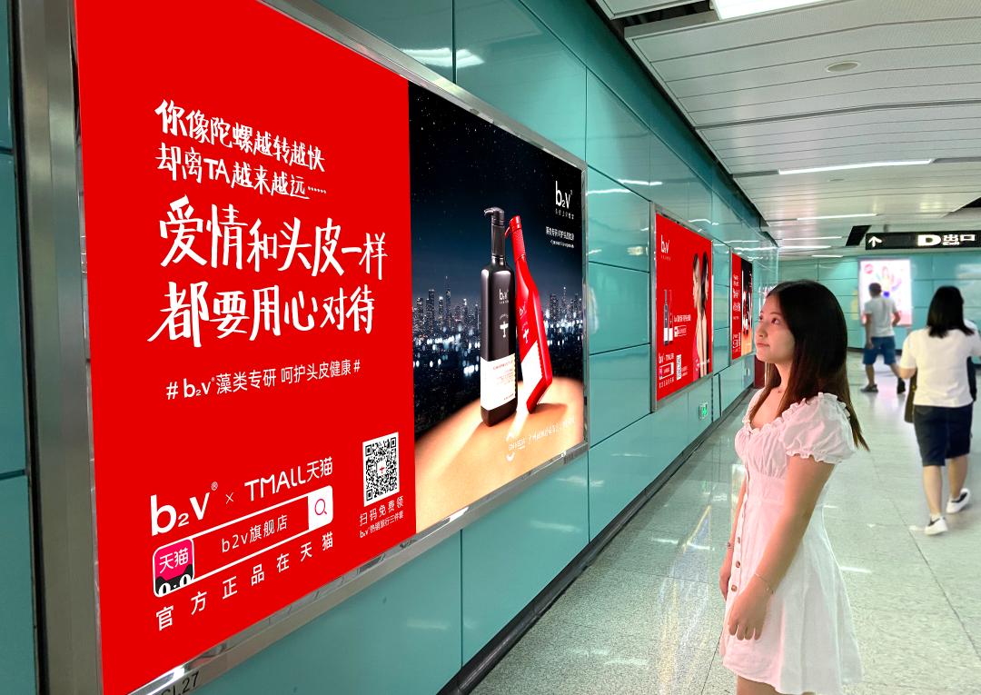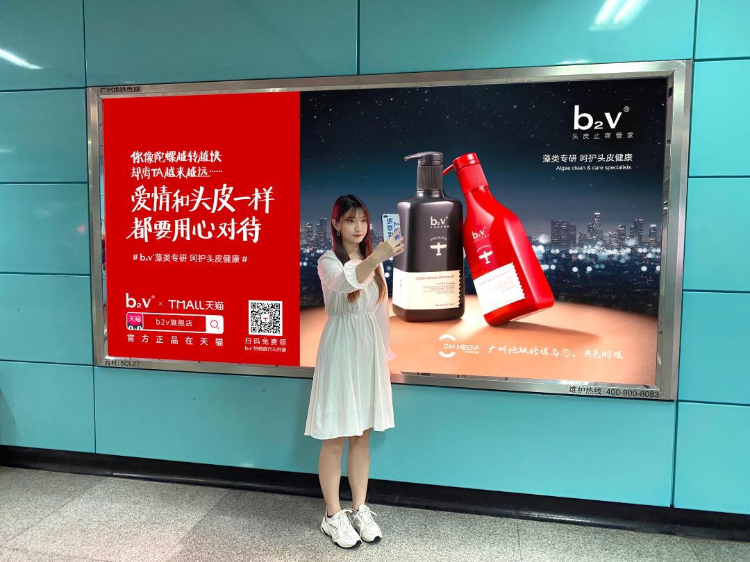 据悉,广告投放当天,不少b2v的忠实粉丝们簇拥在b2v地铁广告下面扫码领取,纷纷表示,b2v洗发水是他们的洗护品必备,这次品牌免费送的旅行装是三个系列的中样三件套,诚意满满。同时,地铁广告上线不到一周,已然成为广州多条地铁线路中的靓丽风景,不仅吸引了众多地铁乘客的拍照扫码,领取福利,主动分享,更吸引众多网红主播的打卡扩散。如小红书达人@爱喝水的兔子虎就在贴文安利表示,作为b2v的品牌铁粉儿,红藻、墨藻、绿藻系列都用过,b2v洗发水独特香味更是让人不舍得更换,“尤其是b2v止痒控油效果非常不错,今天在地铁站看到了b2v广告,文案又那么打动人心,忍不住安利自己的私藏好物给大家”。