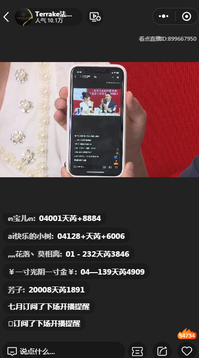 即使是在产品介绍间隙的抽奖环节,为保证门店社群的黏性,TERRAKE法国天芮也要求参与直播间的消费者打出“群编码+天芮+手机号后四位”构成的弹幕,再通过截屏进行抽奖,抽奖后的结果也会由小助手统计,再在各个社群进行公示。
