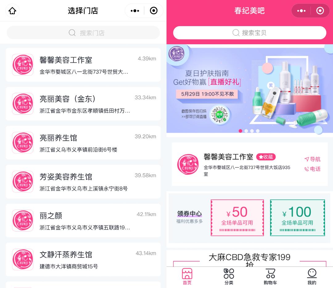 另外,兼具实体门店的品质背书、传统电商24h购物功能、社区电商2h返送功能的春纪美吧,还拥有社交电商的直播功能,6月还将上线合伙人分销制度。