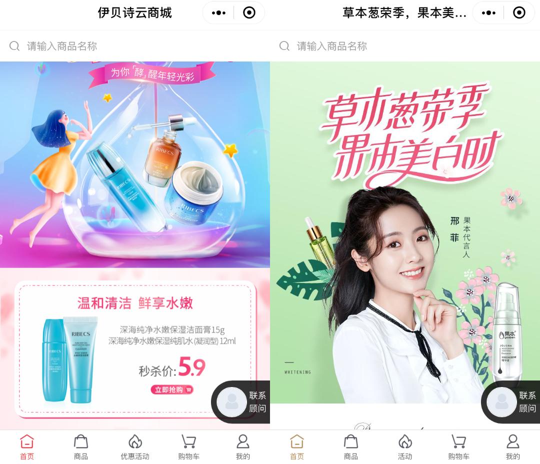 △ 伊贝诗(左)、果本(右)云商城