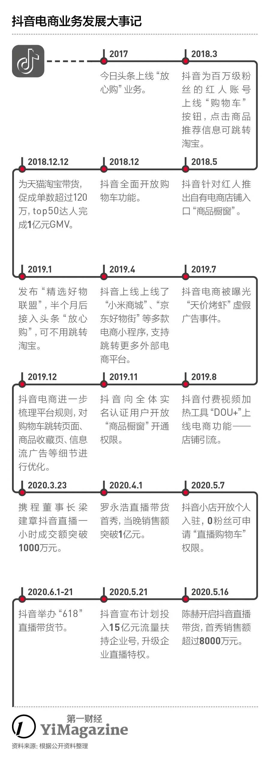 “现在抖音每天开播带货的达人只有十来万,和淘宝直播差不多,快手有四十多万,每天的GMV听说接近5亿元,相比之下我们还是有很大差距。”前述抖音内部人士告诉《第一财经》YiMagazine,今年抖音制定的电商GMV目标是1000亿元,“目前看要实现这个目标还是很轻松的。”
