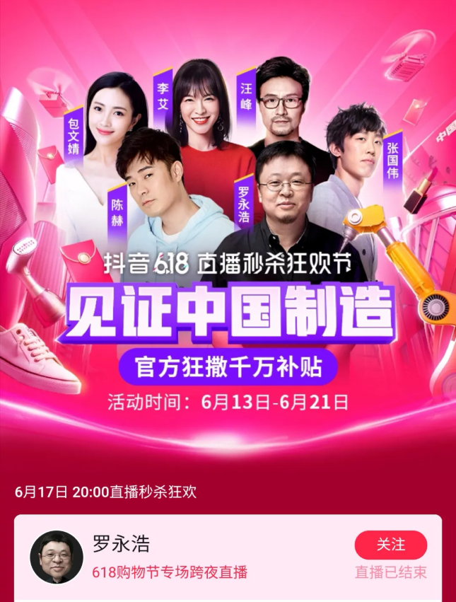 “抖音的内容头部和带货头部重合度很小,所以今年抖音618给直播带货大量的流量倾斜,一方面要冲GMV,另一个任务就是要推动那些从来没有直播卖过货的主播开播。”一位接近抖音的业内人士向《第一财经》YiMagazine透露。