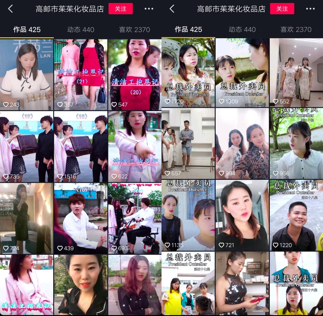 柚子以“化妆品店”为关键词在抖音搜索到一个名为“高邮市茱茱化妆品店”的抖音号,其信息一栏显示:“宝妈,干实体生意,除了赚钱别的没爱好”,目前粉丝达90.9W。