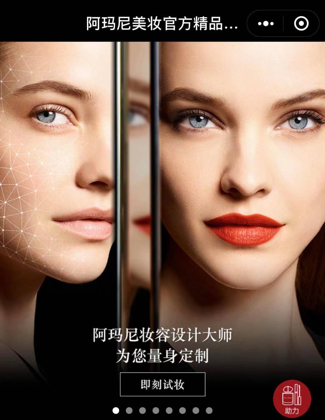 而阿玛尼美妆则于中国率先推出首款线上脸庞设计师美妆服务,运用先进的人工AI技术,通过照片提取脸型、肤色、眉形、眉色、眼睑特征、眼形及唇形等七项面部数据为消费者推荐个性化的美妆产品、配色和上妆手法,提供200余款妆容,满足不同消费者的需求。