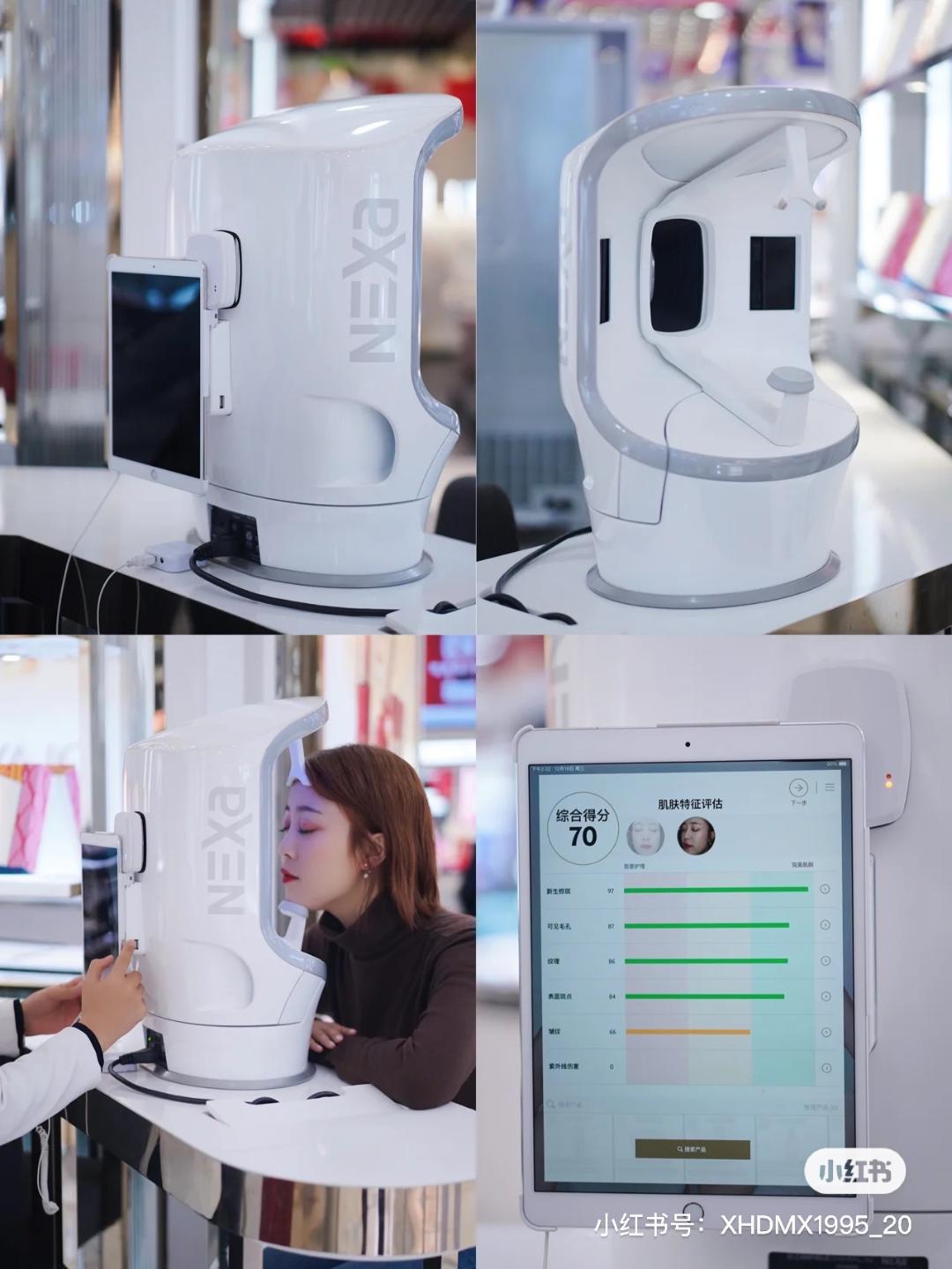 在AI/AR虚拟试妆完成了填补线上购物的体验空白和零互动后,承载了相同技术的智能美妆镜与智能皮肤测试仪等机器也在线下实体门店发挥着自己的效用。