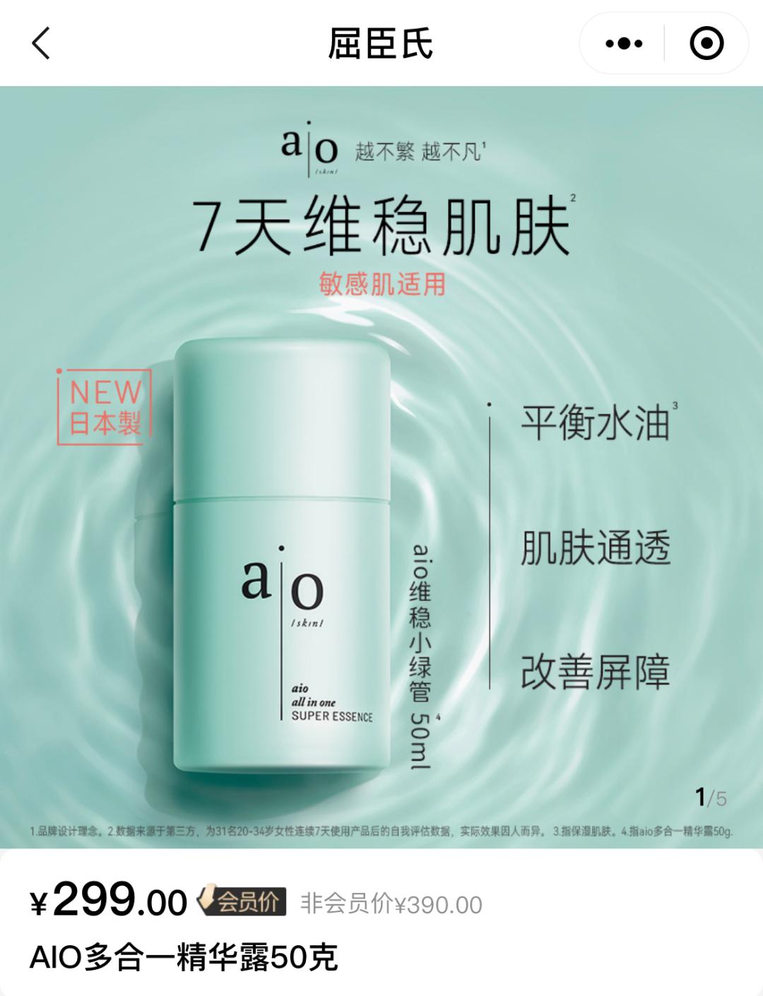 aio是以精简生活作为定位的护肤品牌,