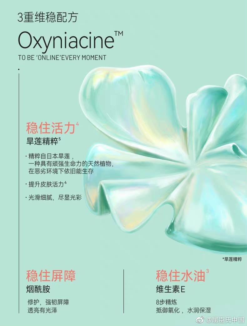 该款主打“OxyniacineTM”三重平衝配方,