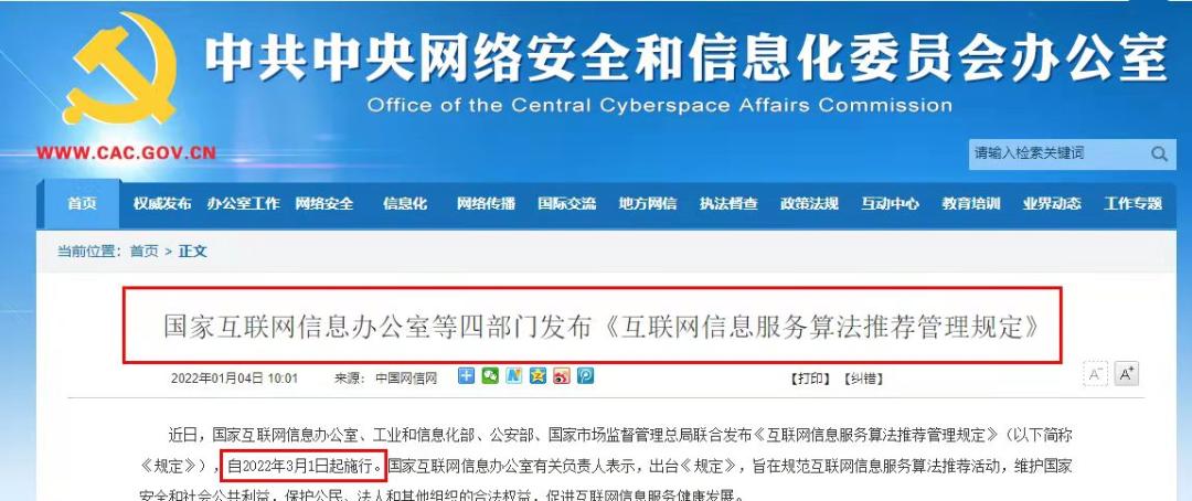 从3月1日起,国家网信办等四部门联合发布的《互联网信息服务算法推荐管理规定》(以下简称《规定》)开始正式施行。