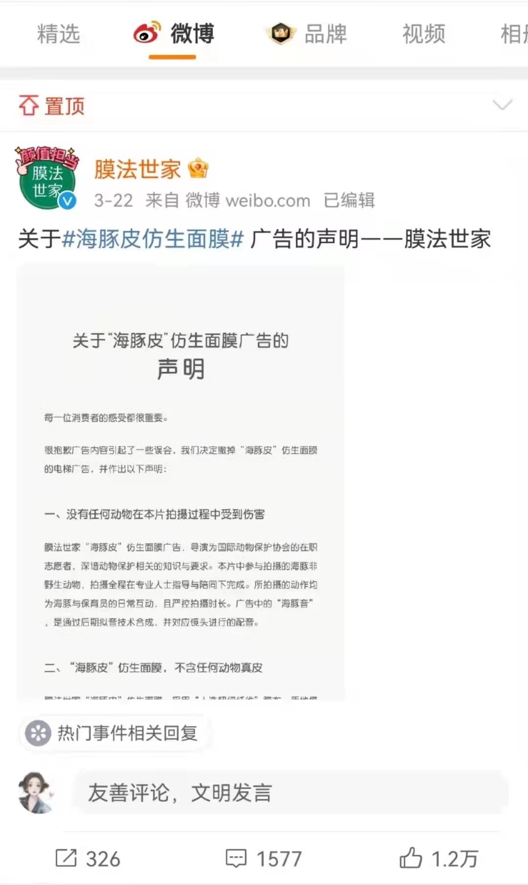 日前,膜法世家因“海豚皮”仿生面膜广告引发社会争议,C2CC传媒X新妆资讯记者也在采访品牌研发人员时进一步得到明确,“海豚皮”仿生面膜不含任何动物真皮,而是膜布触感像海豚皮般光滑细腻。“海豚皮”仿生面膜的研发、生产和制作,并未伤害任何动物。