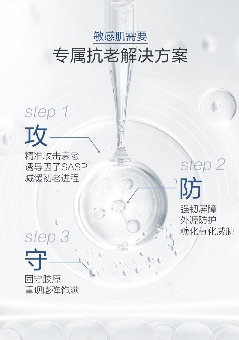 从需求端而言,该产品精准洞察消费者抗衰老的需求。在熬夜、加班、护肤不当等成为常态的当下,肌肤会屏障受损,且引起“衰老诱导因子”——SASP倍增,从而引发“复制性衰老”,加快肌肤衰老速度。针对此,薇诺娜立足皮肤学,为消费者打造了“攻防守”兼备的3D抗老解决方案。