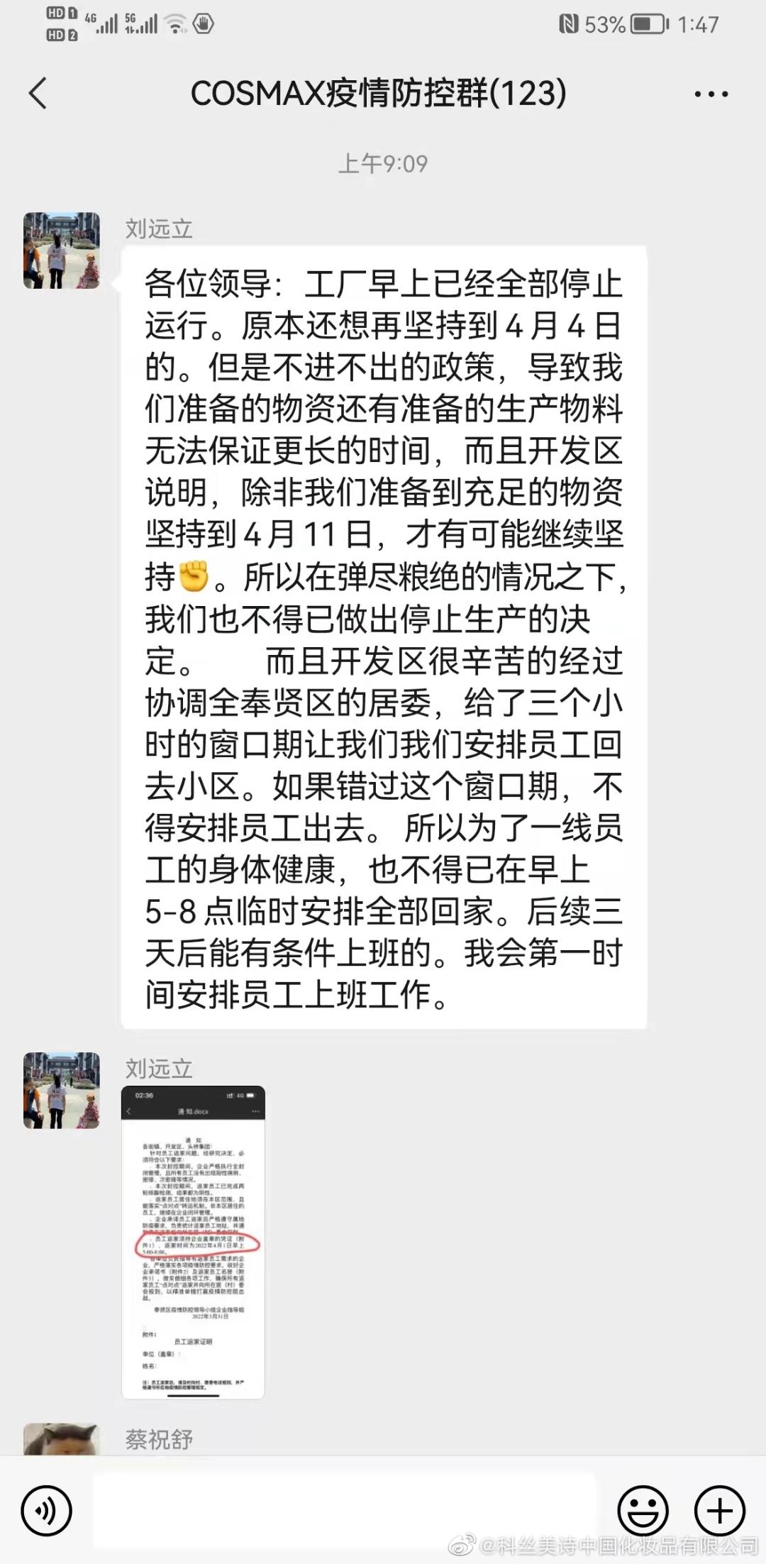 科丝美诗就曾因不进不出的防疫政策,导致生产物料无法供应而宣布停工,“弹尽粮绝”之下无法按期交货,但全闭环管理的防疫生产模式下,已使合作品牌遭受的影响降至最低。
