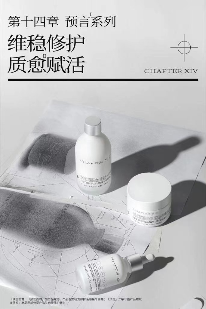 第十四章是一个以“精准护肤”为指导体系的国货品牌,名字灵感来源于创始人的著作《精准护肤——科学原理与实践》,其中的第十四章《精准皮肤学与护理实践设计实例》,品牌的核心护肤哲学便是从中得来。