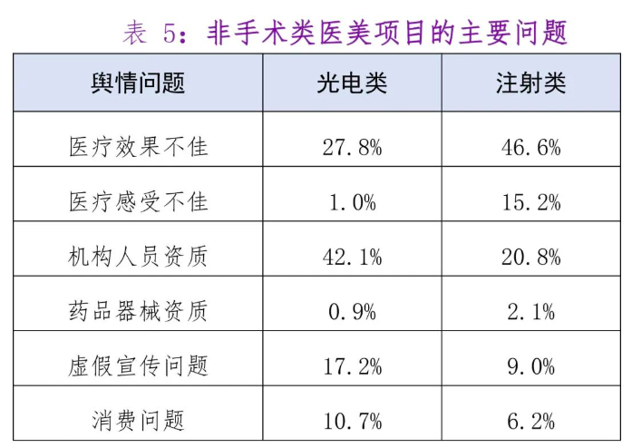 《国内医美消费维权舆情报告(2023)》显示,在光电类的轻医美项目中,消费者投诉最多的是有关“机构人员资质问题”,占比高达42.1%。报告称,这主要是因为在光电类项目服务机构中,掺杂了大量无资质的生活性美容机构。