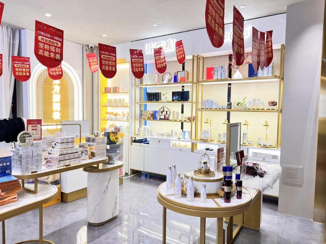 栏目组走访发现,这两家品牌店在门店装修上,都由品牌统一布局,无论是装修设计,还是整体形象,都契合了片仔癀化妆品“东方新国妆”战略。以东方新国妆为背景,融合中式成分、现代护肤时尚及当地特色元素,秉承传统草本文化与现代美肤科技相结合的理念,可以说是品牌店的一次全新升级。