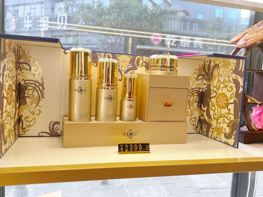 此外,在产品陈列上,也由品牌派遣的指导老师负责规划,大体按照品牌系列分为片仔癀系列和皇后系列展示区,再按“调肤质、调肤色、调肤龄”三大类产品功效细分。