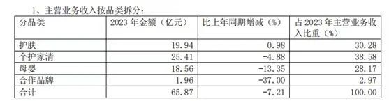 财报显示,公司实现营业收入超65亿元,全年实现归母净利润5亿元,同比增长5.93%。其中,国内业务净利润同比增长约75%;高毛利的护肤品类增速和收入占比均有所提升。