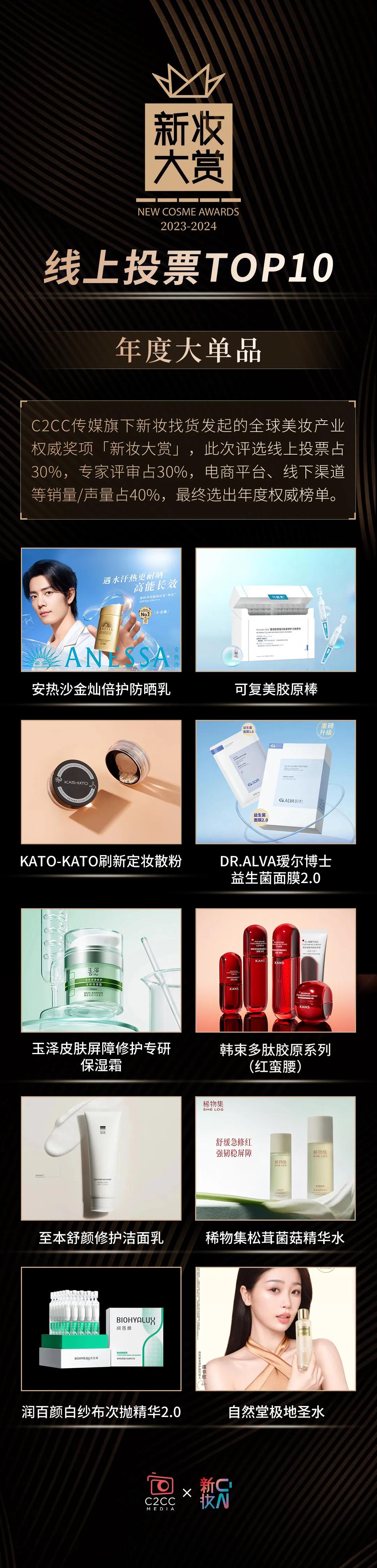 C2CC传媒旗下新妆找货发起的全球美妆产业权威奖项——新妆大赏,历时10天火热线上的票选,线上投票结果于3月31日正式结束。这是一场汇聚了无数热情与期待的票选活动,每一票都承载着参与者的心声与期望。