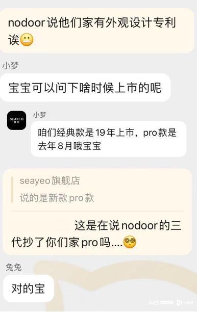 昔又与极萌间的纠纷尚未平息,5月30日晚间,又一美容仪品牌NODOOR在社交平台发文,称让“昔又上大号说话”。从NODOOR引用的消费者与昔又客服聊天记录截图中可以看到,名为“倩倩”的昔又官方客服称NODOOR抄袭昔又, “NODOOR最开始1:1山寨日本的,后来被打假之后开始山寨我们的,主图详情页都一模一样。”前述客服还称“(NODOOR)根本没有什么三甲的认证呢。”