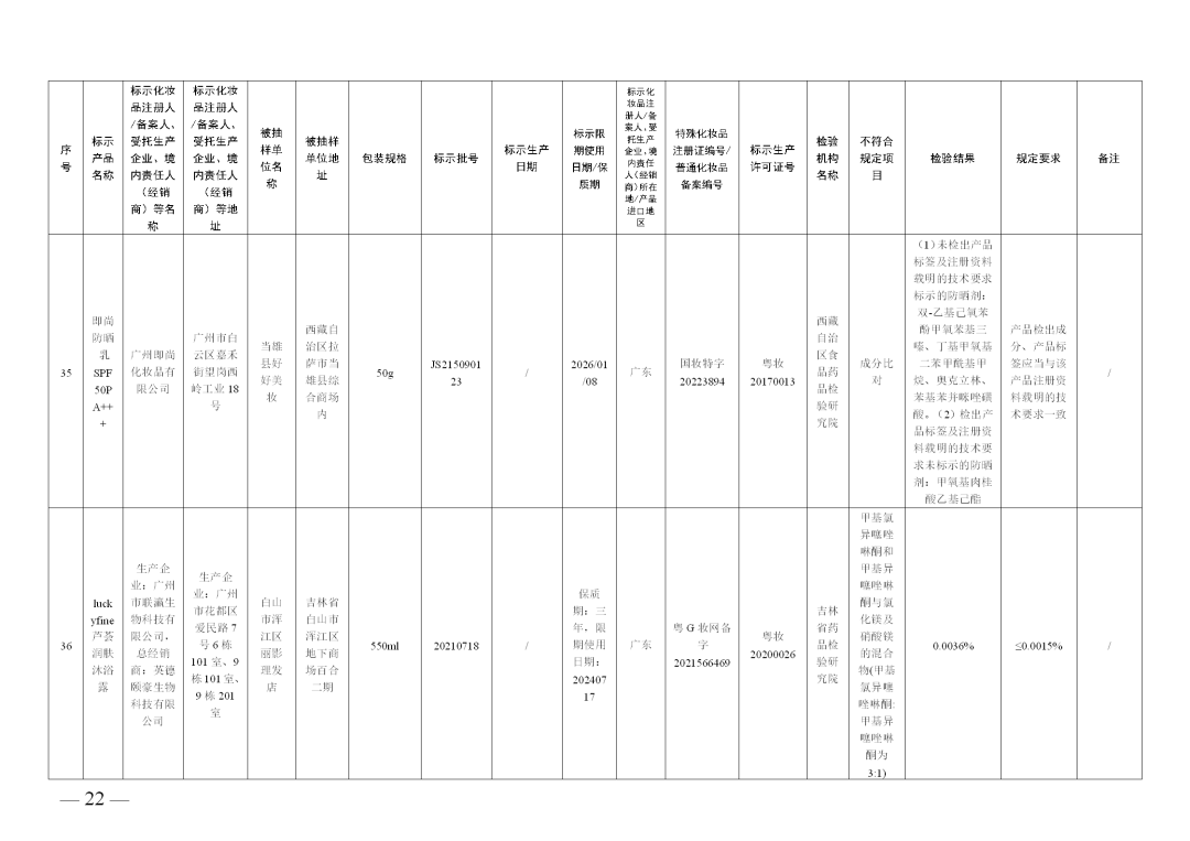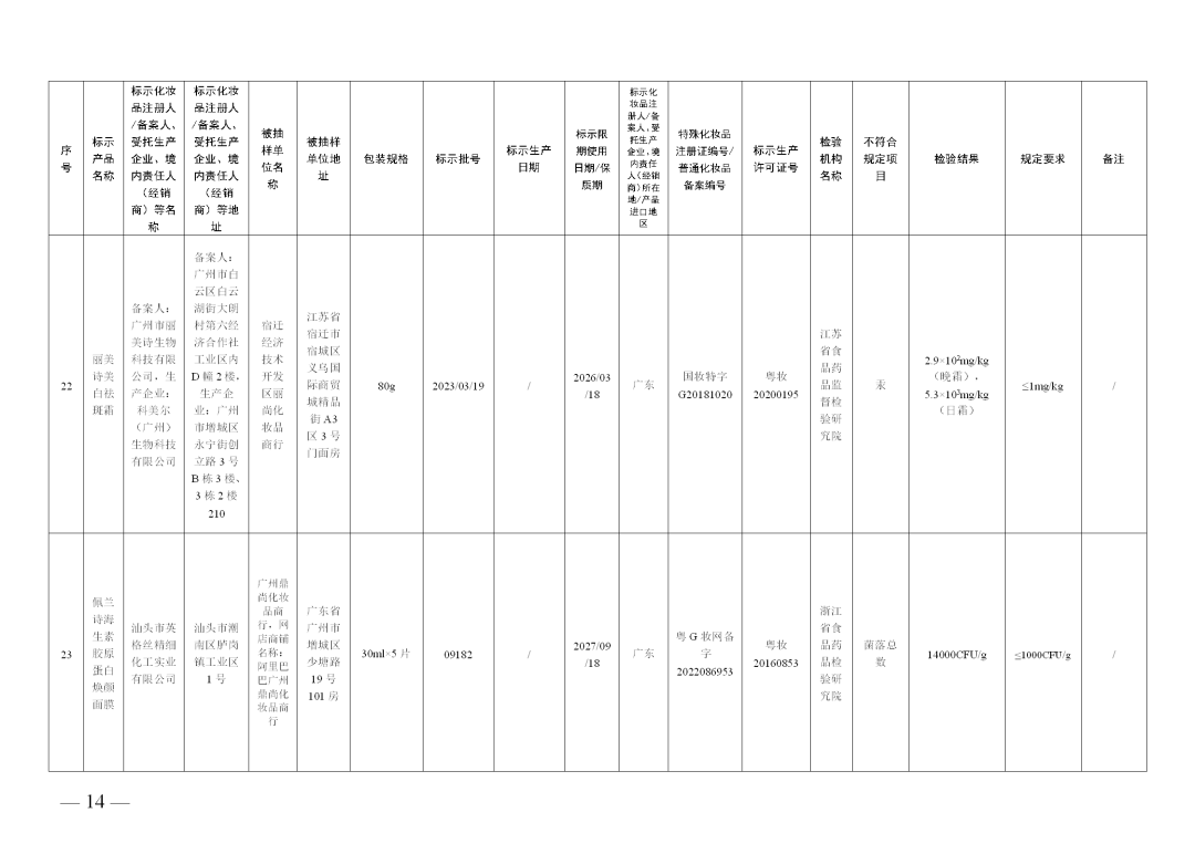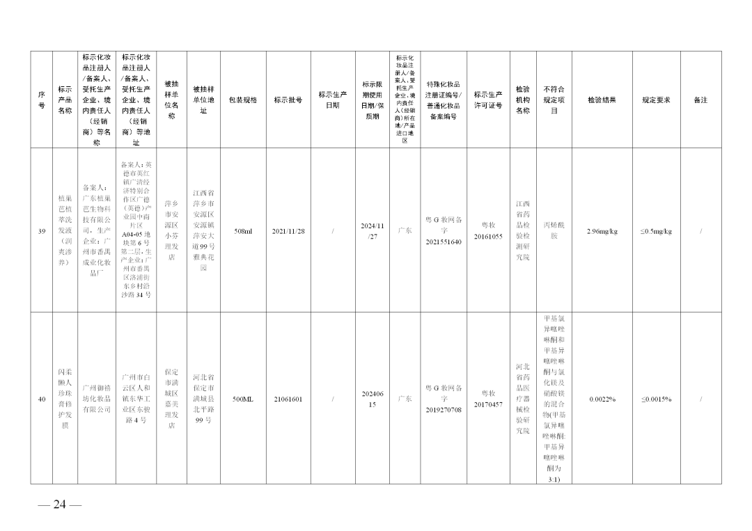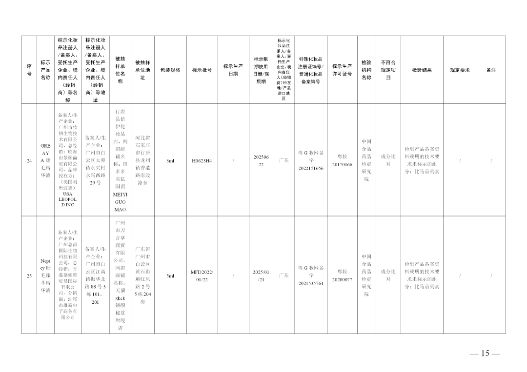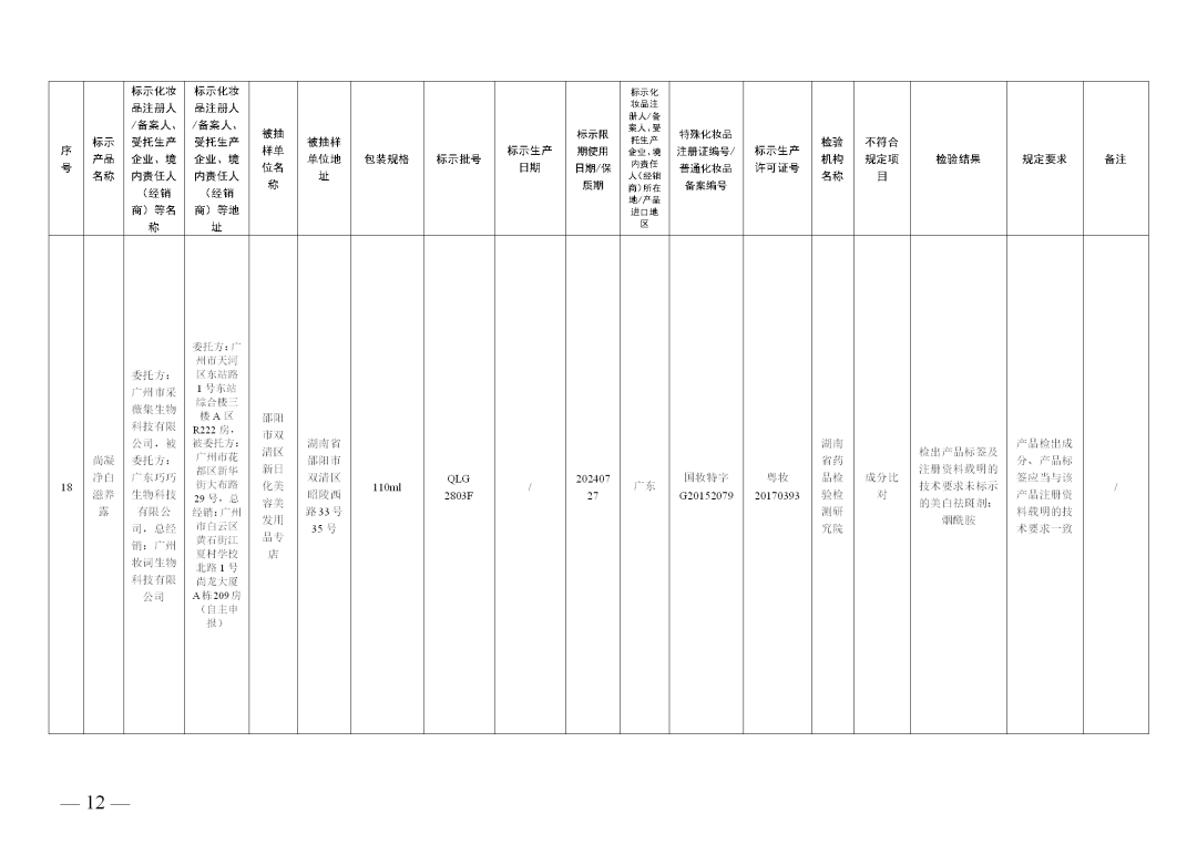 其中,广州市百爱神生物科技有限公司提出样品真实性异议申请,经广东省药品监督管理局审查,被抽检不符合规定的产品确为上述生产企业注册或生产。上述企业提供虚假信息、隐瞒真实情况的行为属于《化妆品监督管理条例》规定的情节严重的情形,查实后将依法从重从严处罚。
