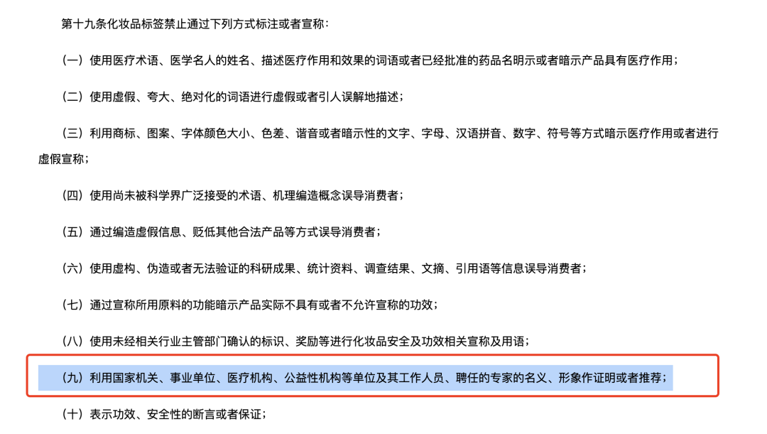 而在实际操作中,一些美妆品牌试图通过强调医生所在单位等方式,加深产品在消费者心中的权威性。这种行为虽然可能在短期内提升品牌形象和销售额,但长期来看却存在诸多隐患。随着国家对美妆行业监管的加强,特别是近年来对于化妆品标签和广告宣传的严格要求,那些试图以医生为背书、游走于规则边缘进行擦边宣传的行为,将面临更加严格的约束。