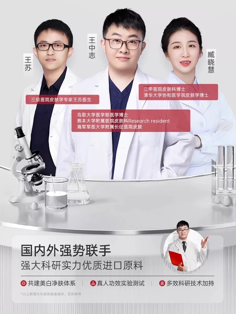 近年来,消费者对美妆产品需求日益多样化的同时,产品的安全性和有效性也成为其关注重点。在这一背景下,除了在科研力与成分上的内卷外,品牌方纷纷在宣传策略上寻求创新与突破,诸如强调产品的械字号认证、医学背景等。同时,权威医生共研共创为产品背书成为了品牌出圈并争夺市场份额的一大法宝。