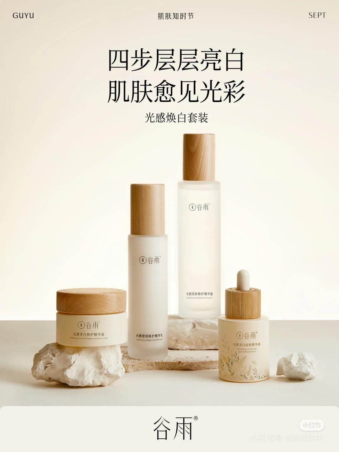 比如,谷雨“光感美白套装”三件套券后461元,“雪肌水乳霜套装”券后341元,美白奶罐139元,光感水164元,对比国际大牌动辄千元的定价,显著降低了优质美白产品的消费门槛。而“光甘草定”这一核心成分的加入,更让产品在平价区间实现了功效升级,完美契合了年轻人“花得值”的消费心理。