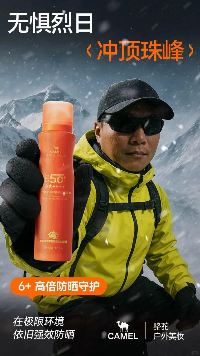 相比传统美妆,户外美妆产品需要在极端环境如高温、极寒、强紫外线等之中保持稳定性和功效,因此对成分的选择和配方设计有更高要求。以骆驼户外美妆的美白防晒喷雾为例,该产品具备“6+防晒”功能,即SPF50+、PA++++和浴后SPF50+的6个+。其中的浴后SPF50+在防晒品牌中较为罕见,其意味着用户即使在户外长时间活动、沐浴后,皮肤仍能获得高强度的防晒保护。