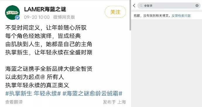 因此,相比周杰伦,海蓝之谜在中国市场也更倾向于使用全智贤的广告宣传,在微博、小红书等渠道投放不断增加,其也在国内多次参加品牌宣传活动。