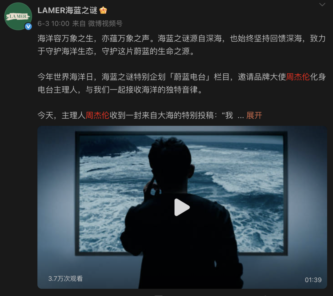 也是在这个契机下,2024年海蓝之谜在中国市场加大了投入,试图主动找到更大的增量。在全智贤之后找了国民歌手周杰伦。