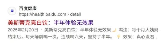 记者发现,在小红书等平台,有多位博主吐槽美斯蒂克亮白饮有致月经不正常的副作用,甚至在医疗平台上,也有女性消费者咨询医生喝美斯蒂克致月经异常的问题。美斯蒂克亮白饮定位于“口服美容液”,既不是保健品也不是药品,疑似落入监管真空。