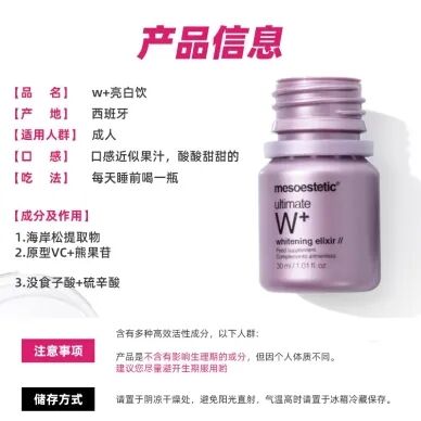 美斯蒂克亮白饮的公开成份为:海岸松提取物、原型VC、熊果苷、没食子、硫辛酸等。