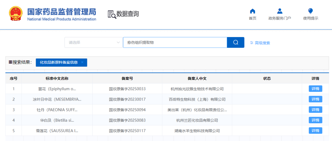 值得注意的是,C2CC传媒X新妆以“愈伤组织提取物”搜索,完成备案的愈伤组织提取物仅有5个,未名拾光占3席,正在抢占下一代植物提取物创新高地。