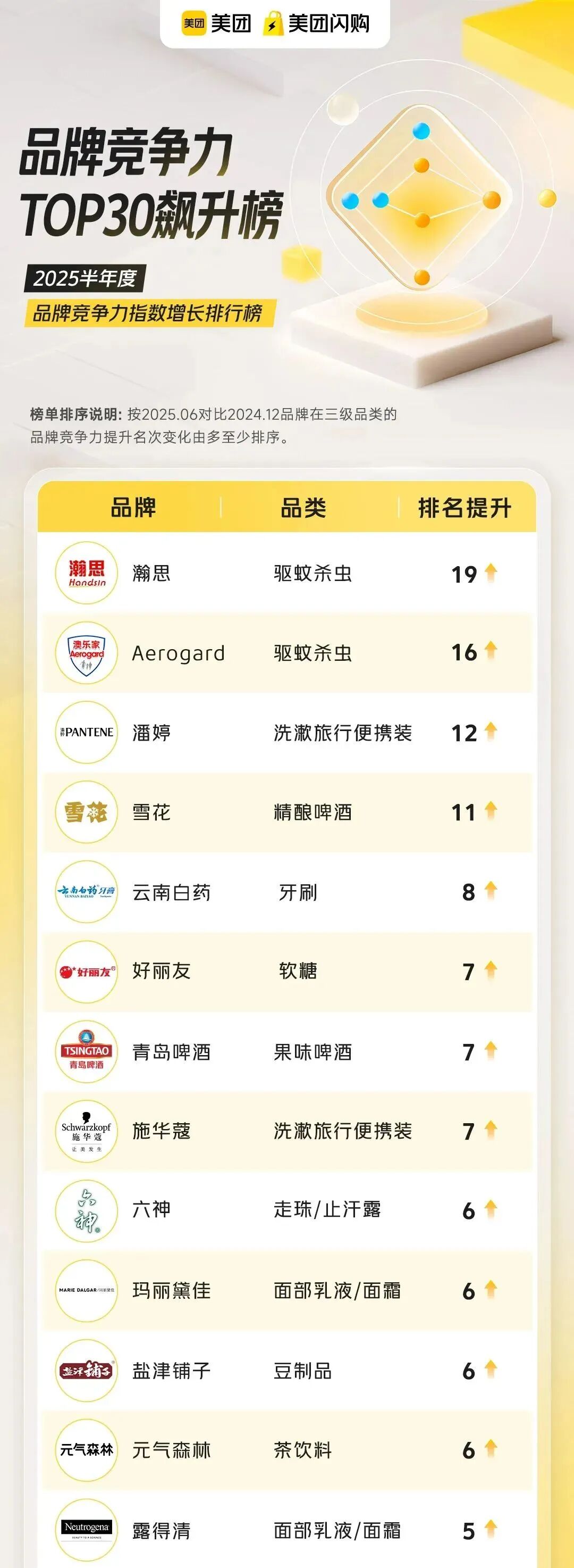 这促使各大平台积极布局美妆即时零售,而其销售成绩又有力佐证了其潜质。美团从2022年就开始孵美妆闪电仓,到2025年8月已经有4000家店覆盖297个城市,《2025半年度品牌竞争力TOP30飙升榜》里12个都是美妆个护品牌。