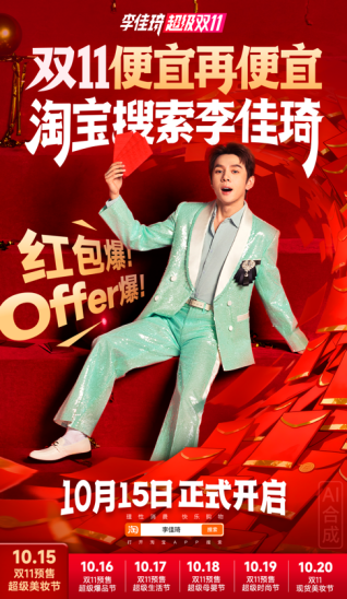 此外,为了提升购物体验与惊喜感,在平台通用机制基础上,李佳琦直播间加码福利玩法。今年双11期间,不仅将在10月15日、16日两天集中发放“红包雨”,还首次创新推出“集卡片赢红包”、“答题抢红包”等互动玩法,增添趣味性。更值得一提的是,直播间将面向所有用户发放九折折扣券,回馈广大消费者,实现“折上折”优惠。