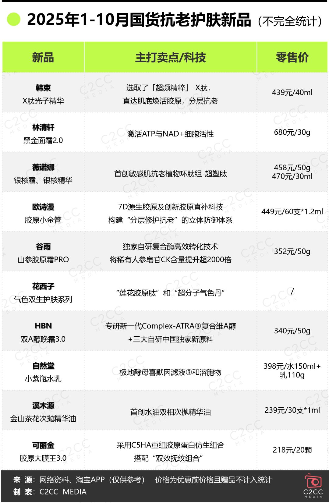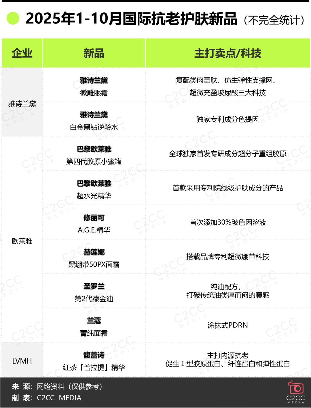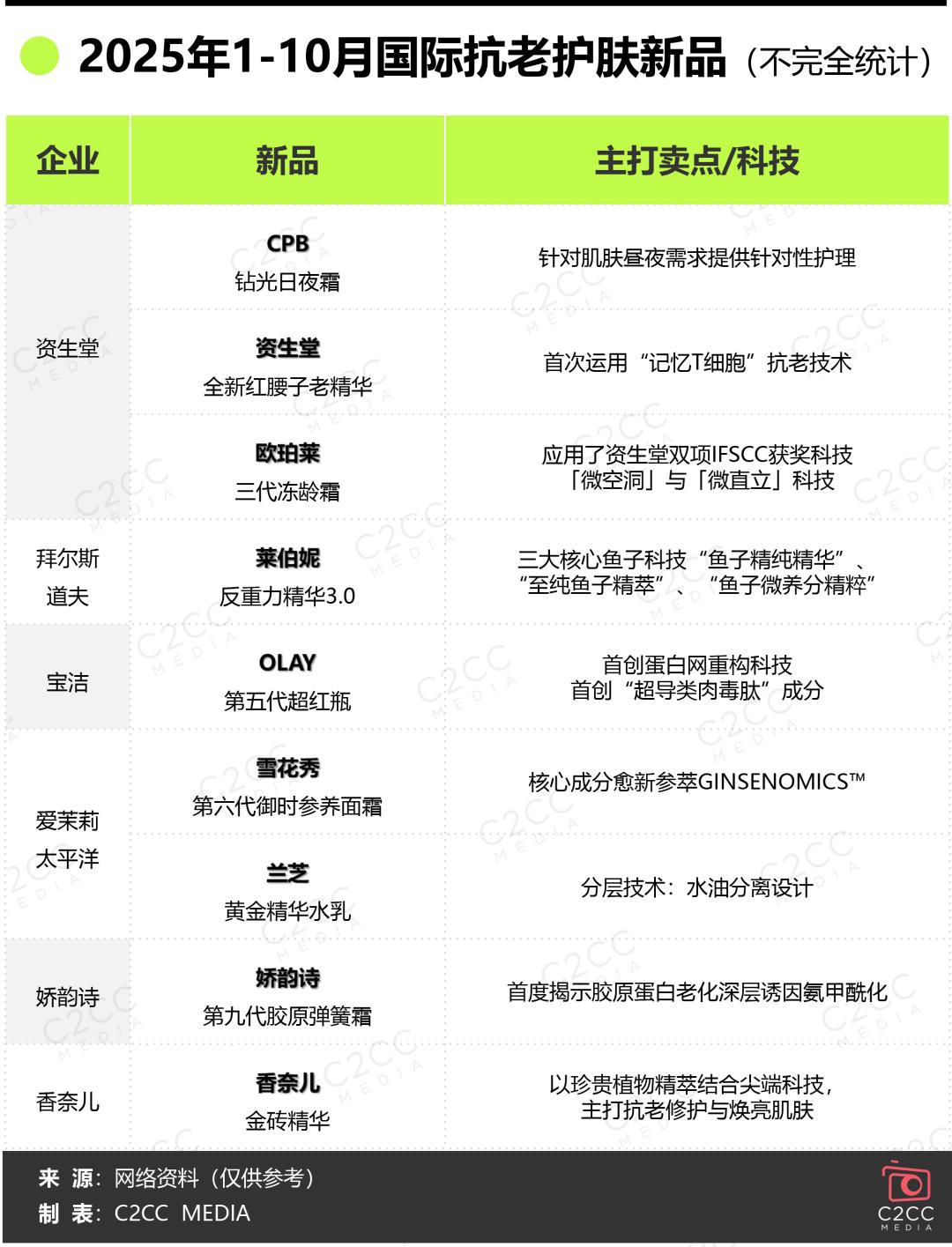 笔者就从2025年1-10月国内外品牌推出的抗衰护肤新品中,窥探一二。