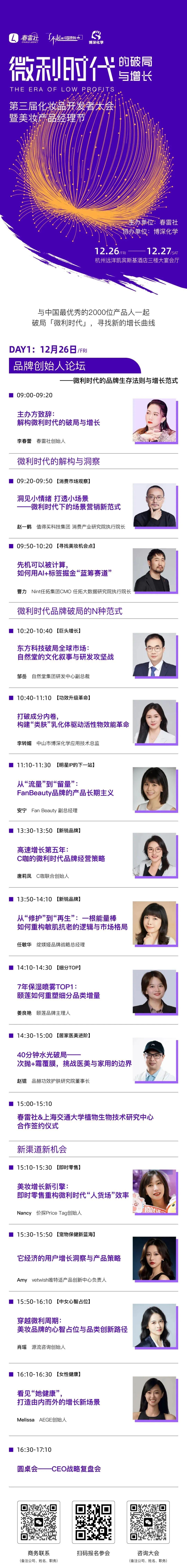 聊聊消费新语境、品牌增长秘笈,共寻增长新曲线12月26日全天,主会场将举办「品牌创始人论坛」,聚焦一线美妆品牌对消费市场的机遇洞察,解读品牌战略的升级规划,探讨品牌全域运营的策略,寻找逆势而上的全新增长点。