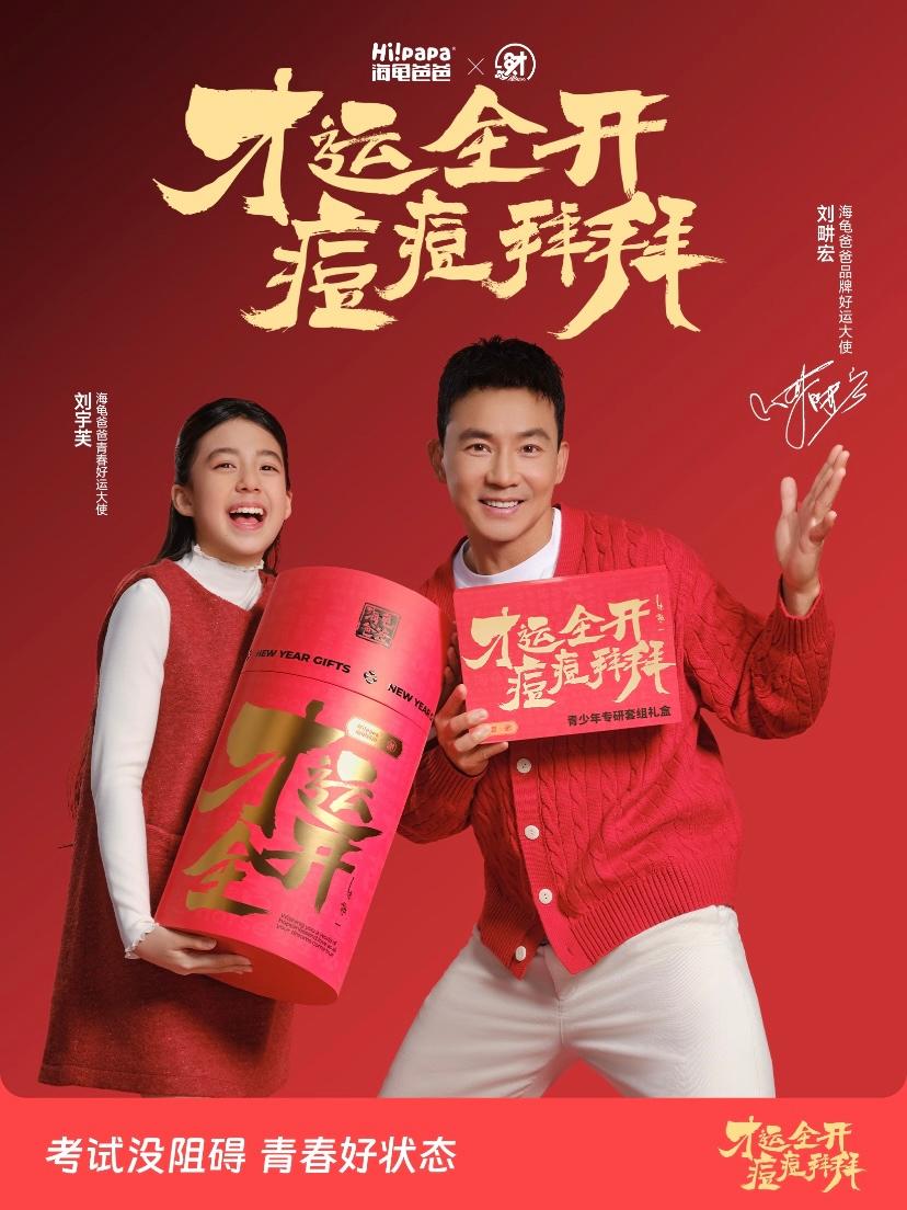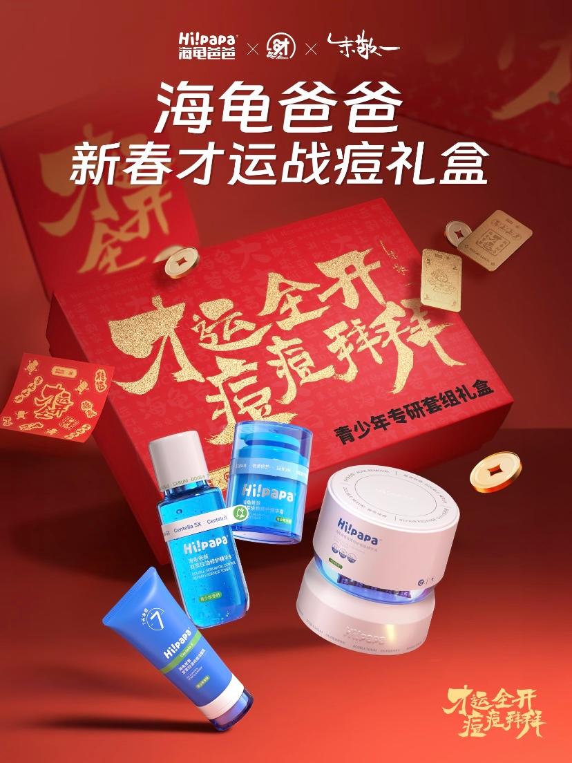 另一方面,海龟爸爸邀请国潮书法家朱敬一独家创作“才运全开”“上岸”“稳赢”等系列书法作品,这些充满潮流感与美好寓意的文字,不仅成为新春礼盒的核心视觉元素,更将“战痘”与传统文化中积极向上的“祈福”寓意巧妙联结,精准契合青少年的内心情感需求。