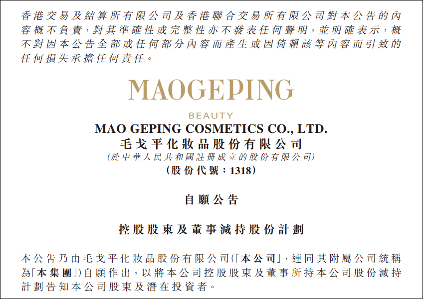 创始人及主要股东在公司上市后减持股份,在A股与港股消费板块中并不鲜见。随着股份流通性增强,这类行为常被视为股东进行资产配置与财富管理的正常步骤,也是企业资本化进程中常见的一环。在美妆行业,近两年已有多家知名企业,如华熙生物、贝泰妮、丸美股份等,相继披露过重要股东的减持计划。